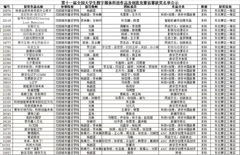 近日,第十一届全国大学生数字媒体科技作品及创意竞赛(省赛)落下帷幕。由我校太阳成集团tyc33455ccww吕从娜、陈禹竹、杨越茗、刘美等11人担任指导教师,79名学生组成的36支代表队分别荣获东北赛区一等奖8项、二等奖12项、三等奖16项的优异成绩,并有8项作品被推送至国赛决赛。具体名单如下。
