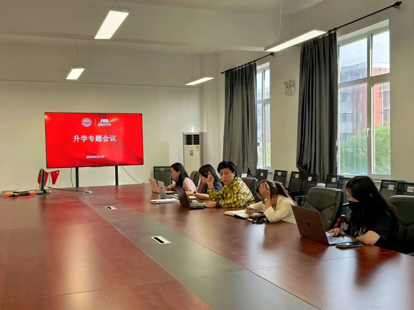 最后,吕从娜在会议中对后续工作提出要求,教师需及时完成特定学生信息的汇总上报,针对预备出国读研的备考生,需协同落实资源对接支持。学院将启动“一对一”导师联系帮扶计划;并强调将持续每周举行一次升学工作汇报,领导班子成员需实时更新专业动态,确保考研工作“周周有进展、月月见成效”。