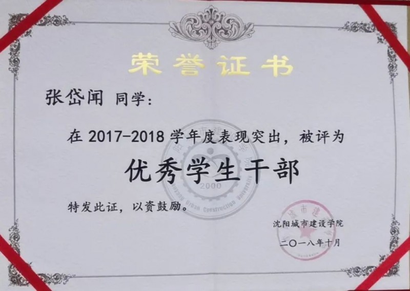 2017-2018年度·tyc33455cc太阳成集团优秀学生干部