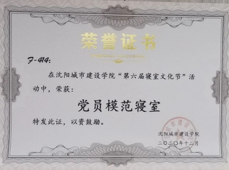 2020-2021年度·tyc33455cc太阳成集团“第六届寝室文化节”党员模范寝室 2021年度辽宁省优秀大学生党员
