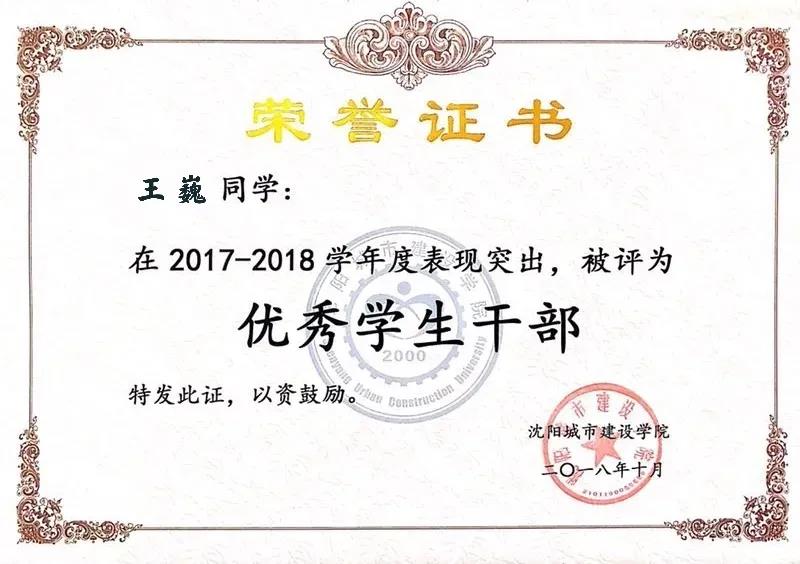2017-2018年度 tyc33455cc太阳成集团优秀学生干部;