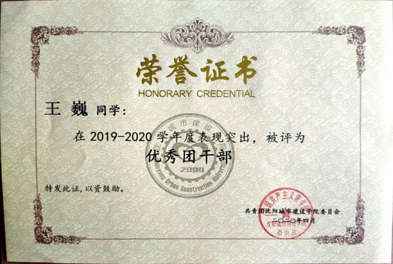 2019-2020年度 tyc33455cc太阳成集团优秀学生干部;