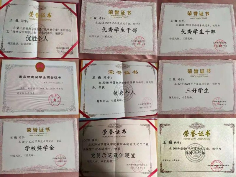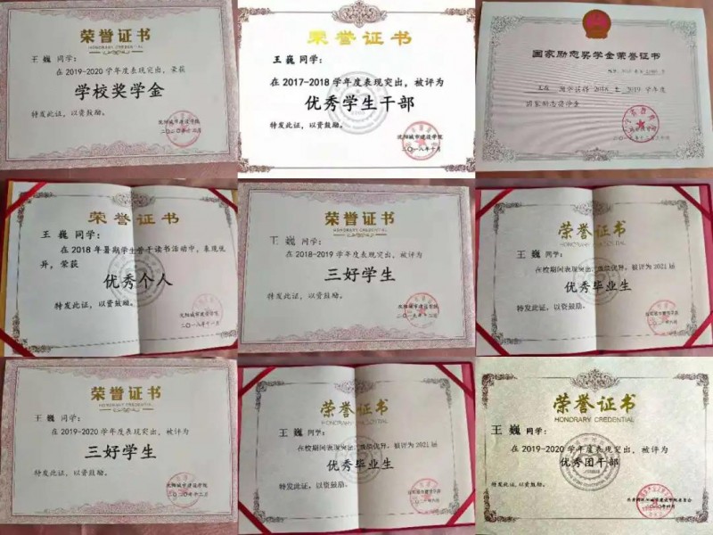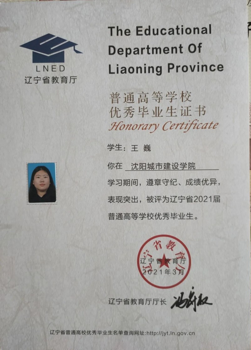 2021年度 辽宁省2021届普通高等学校优秀毕业生。