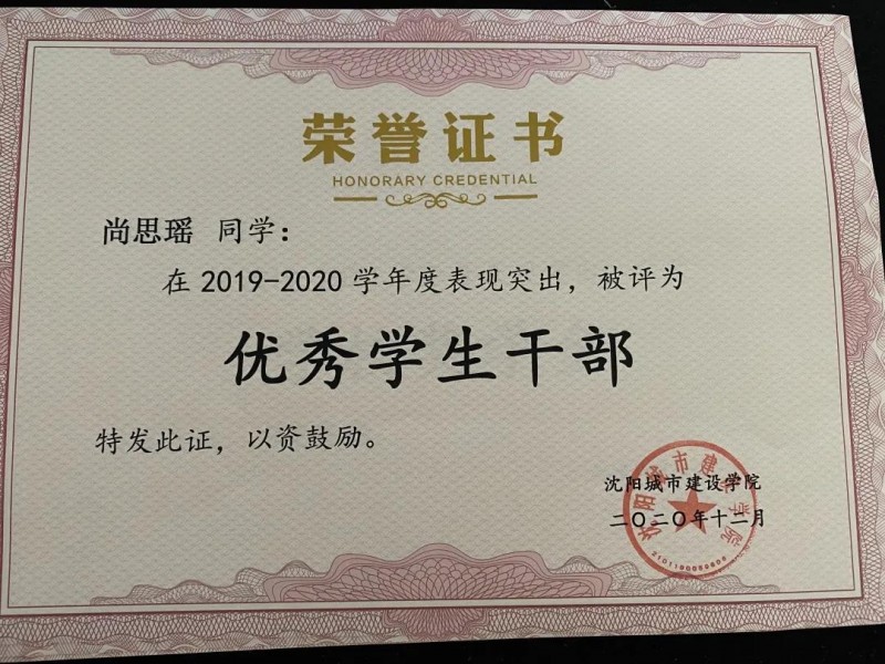 2019—2020学年度tyc33455cc太阳成集团优秀学生干部