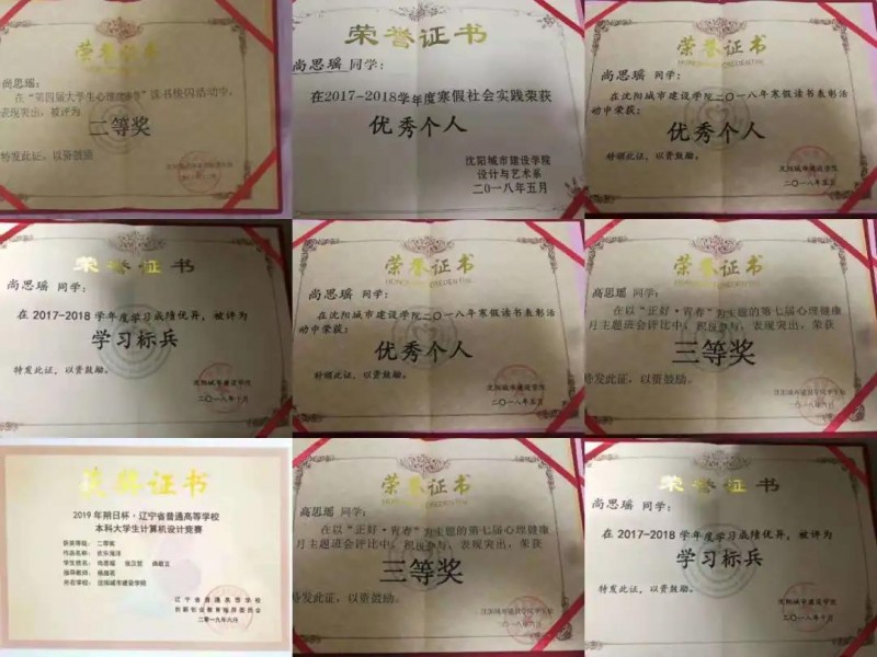 2019年朔日杯辽宁省本科大学生计算机设计竞赛二等奖。
