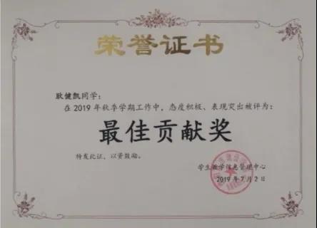 2019年秋季学期学生教学信息管理中心最佳贡献奖