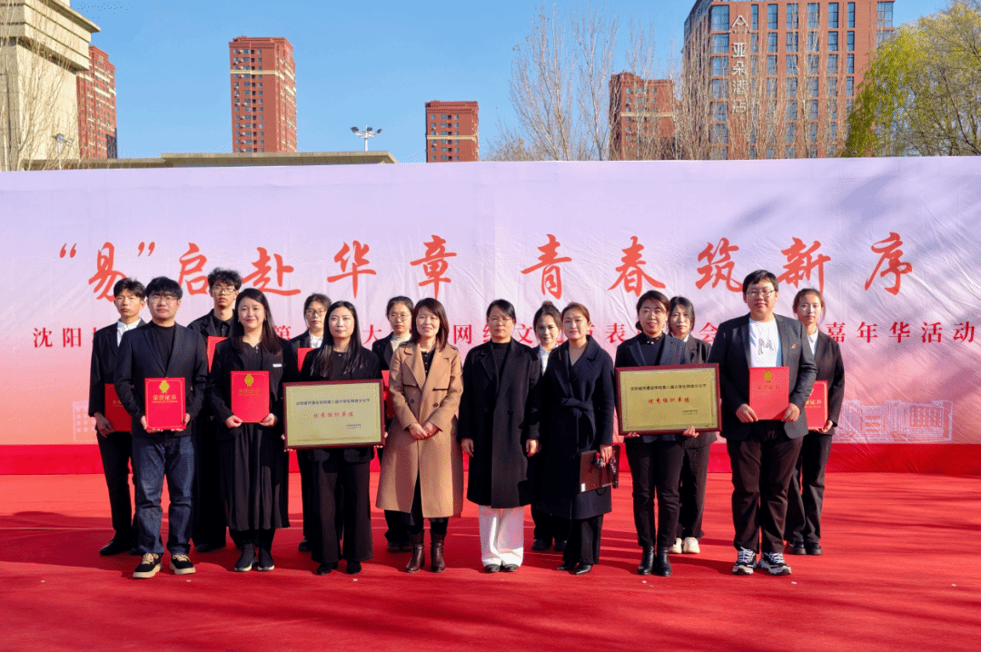 太阳成集团tyc33455ccww党总支书记、副院长吕向楠为第三届易班文创产品设计大赛获奖学生及第八届网络文化节优秀作品奖学生代表颁发荣誉证书。