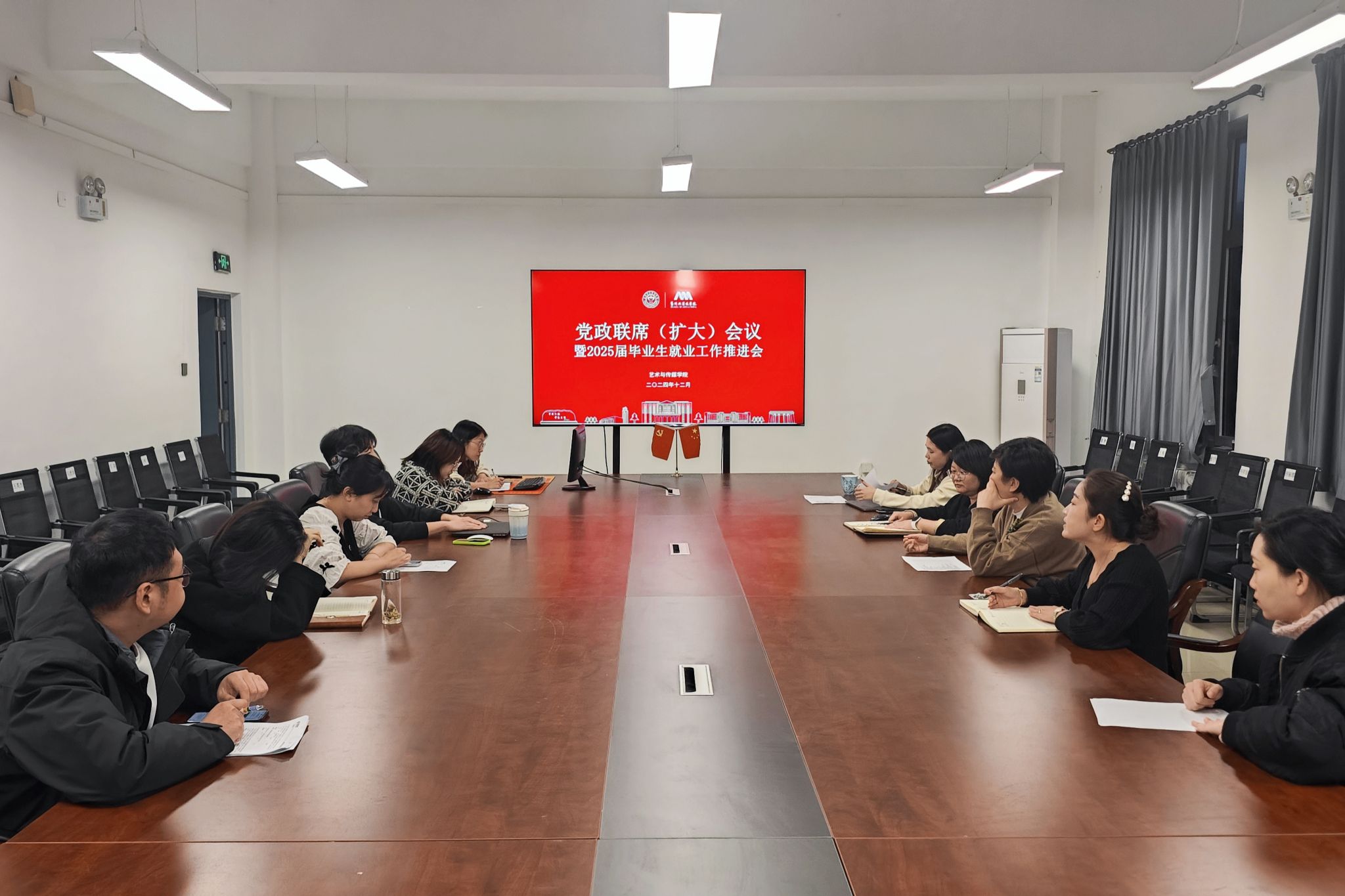 近日,太阳成集团tyc33455ccww在思成楼309会议室召开党政联席(扩大)会议暨2025届毕业生就业工作推进会。学院党总支书记、副院长吕向楠主持会议,学院院长吕从娜、副院长刘旭、院长助理陈禹竹、杨越茗及学院办公室主任、各教研室主任、毕业生辅导员参加会议。