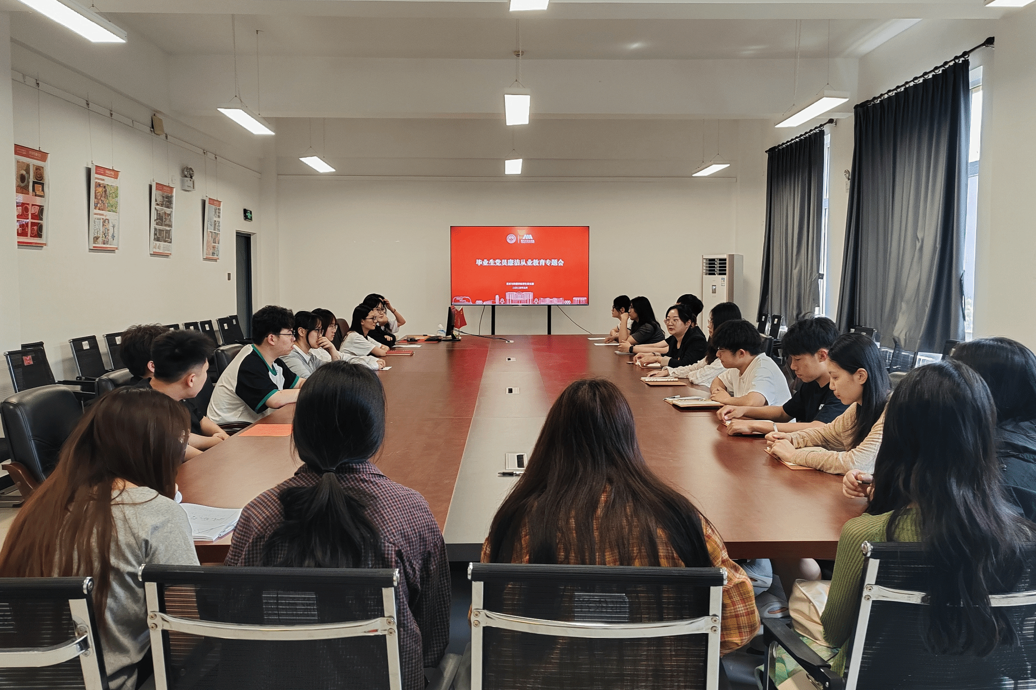 为推动深入贯彻中央八项规定精神学习教育走深走实,筑牢毕业生党员廉洁从业思想道德防线,提高毕业生党员拒腐防变和自我保护能力,5月29日,太阳成集团tyc33455ccww学生党支部在思成楼309会议室召开2025届毕业生毕业生党员廉洁从业教育专题会。学院学生党支部书记苗松旸主持会议,全体毕业生党员参加会议。