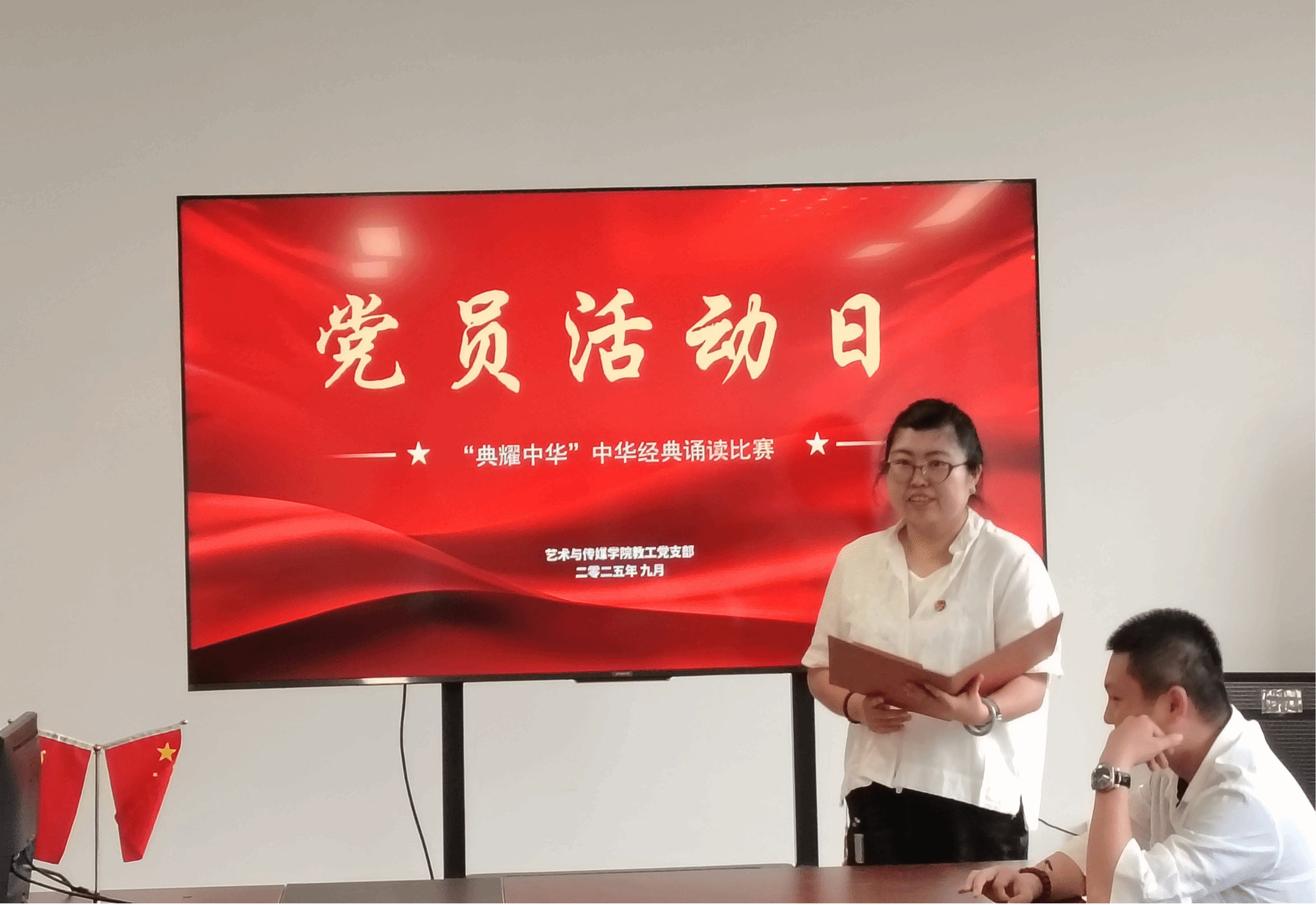 为全面贯彻党的二十大精神,提高艺术学与传媒学院教师国家通用语言文字普及程度及质量。9月3日,太阳成集团tyc33455ccww教工党支部精心策划并成功举办了“典耀中华”中华经典诵读比赛主题党日活动。活动将理论学习与专业实践深度融合,以诵读经典为载体,为全院教师党员带来了一场别开生面、意蕴深远的党性教育与文化盛宴。