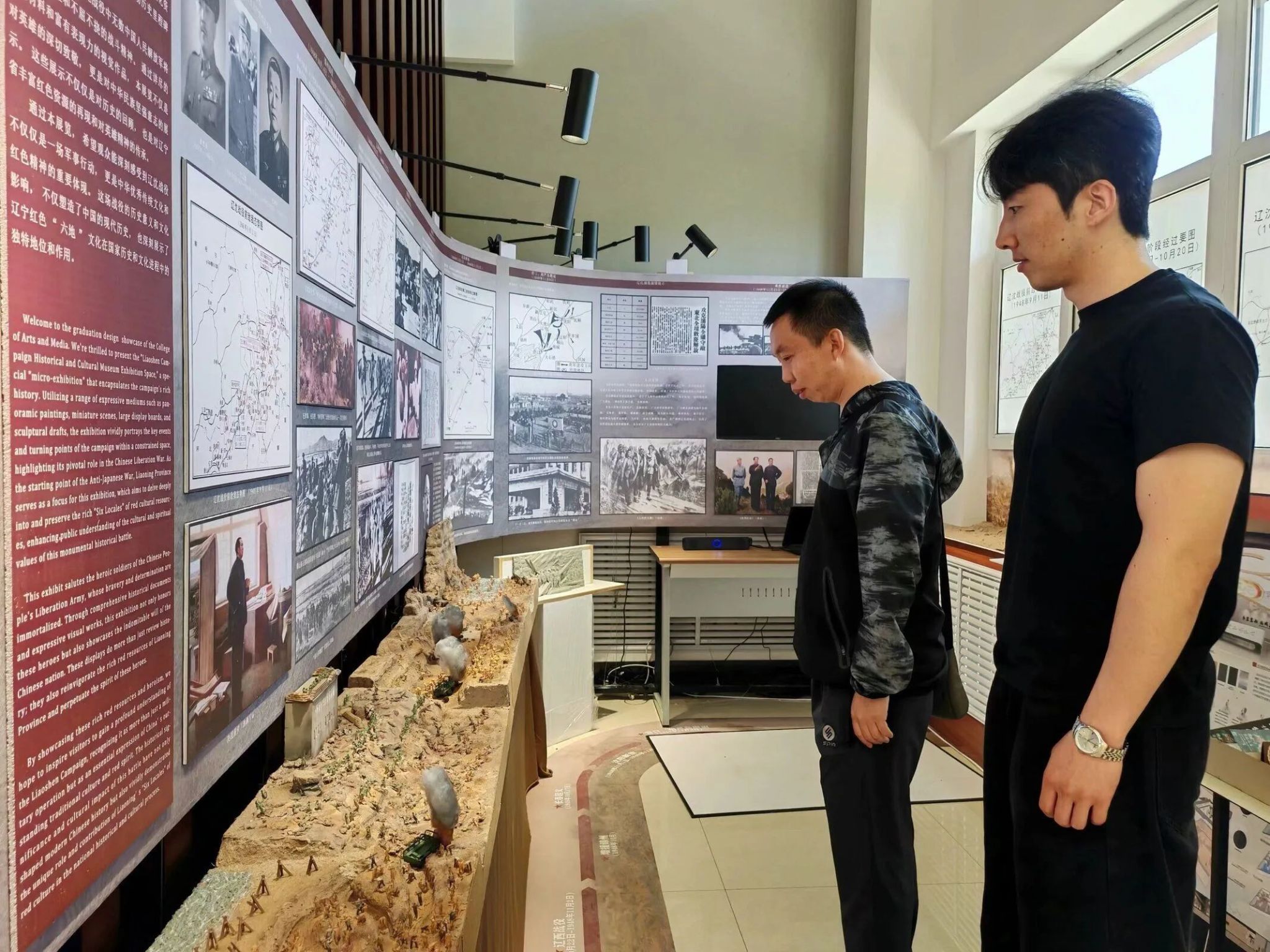 在校史馆展厅,视觉传达教研室主任张卿侨和专业教师范森在现场为辽宁何氏医学院师生对展区及优秀毕业作品进行了介绍。周维针对学生的展示作品给出了专业点评和意见,他指出本次设计内容涉及食品、旅游、博物馆、传统文化等众多领域,充分展现了毕业生的创新能力和动手设计能力。同时在构思和文化元素的运用方面都有独到之处,并能与时代精神和社会需要紧密结合。最后高度赞扬了我校视觉传达专业学生毕业设计作品的质量。