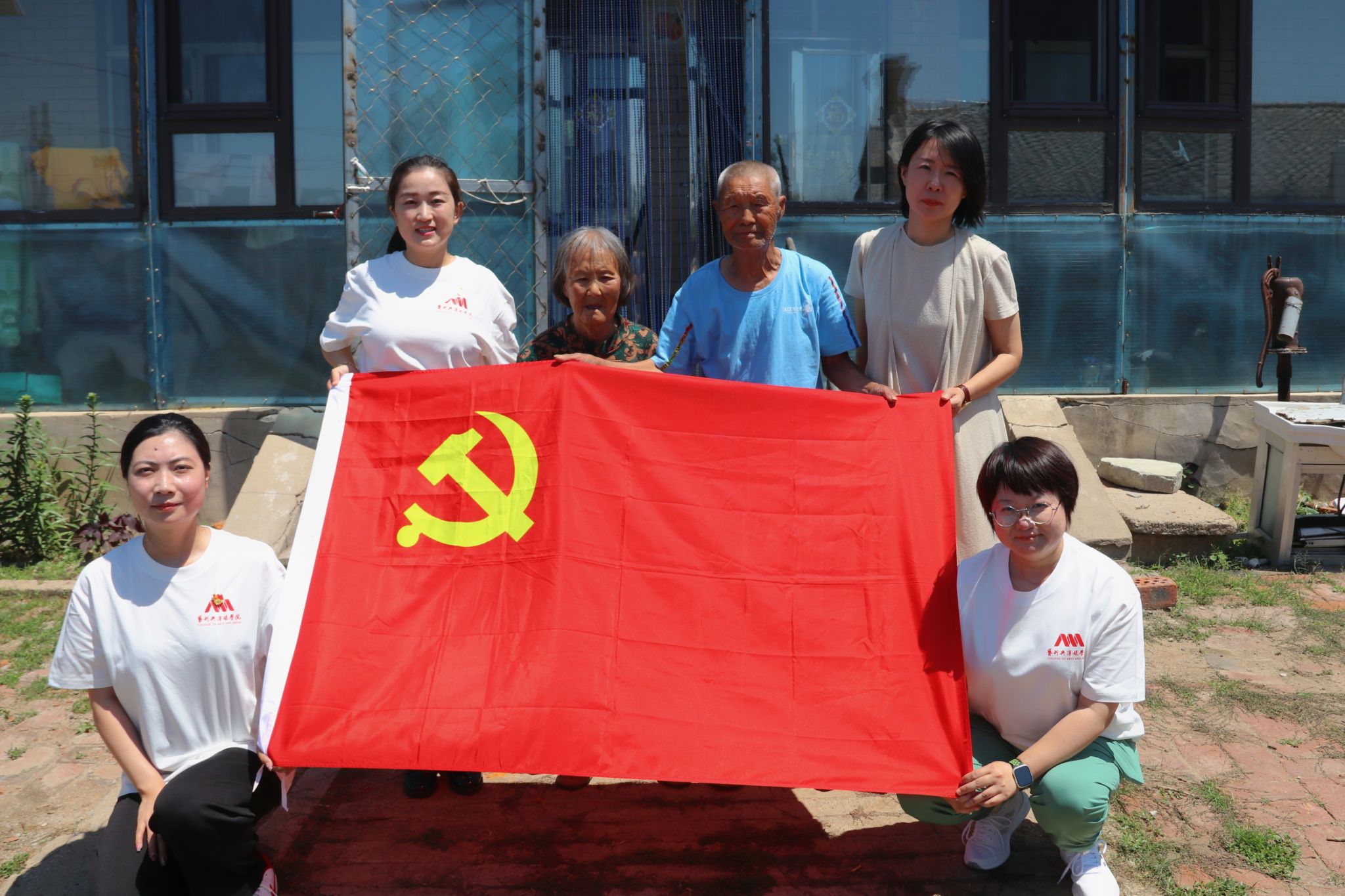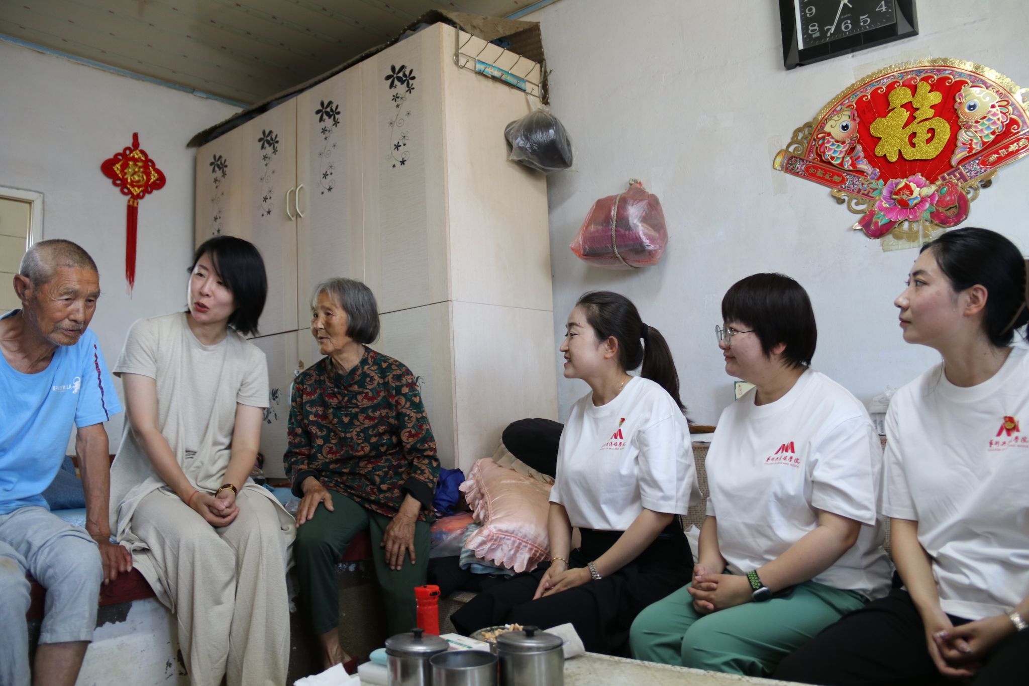 “七一”前夕,学院党总支书记吕向楠、副院长刘旭、团委副书记刘红阳在市直机关工委派驻祝家街道佟家峪村第一书记刘奕莎的陪同下,走访慰问了“校地党建共建单位”佟家峪村的老党员曹玉民与赵静元夫妇。